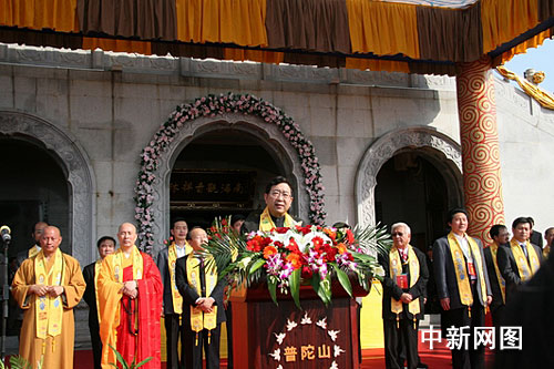 圖為余秋雨在觀音文化節(jié)開幕式上發(fā)言