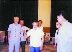 他步履穩(wěn)健、精神矍鑠,微笑著與人們握手、打招呼,充滿一種親切、自然的氛圍,顯示出一種平常人的生活,牌友間的情誼。(圖二、三)
