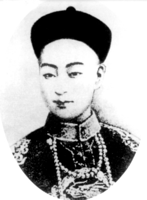 攝于一百多年前的歷史照片:光緒皇帝(中)