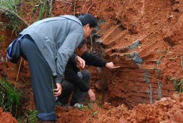文物專家現(xiàn)場查看古墓