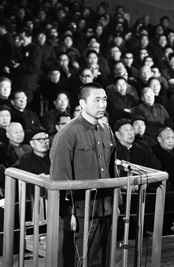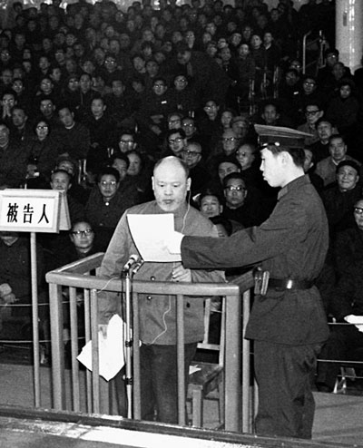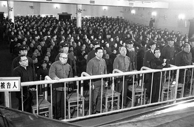 3 時(shí)03分,王洪文第一個(gè)被帶上被告席,接著是姚文元……3 時(shí)15分,江青被帶進(jìn)。