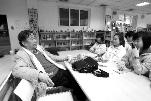 身為北京二中校友的舒乙先生,昨日走進自己的母校。不過這次他的身份有些變化,不是作為母校的畢業(yè)生,而是學(xué)校畢業(yè)生的“導(dǎo)師”。
