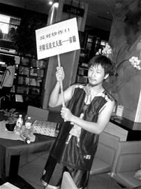 座談會進(jìn)行了一個小時左右,還算順利,但接下來的簽售環(huán)節(jié)卻出現(xiàn)了一個小插曲,“大概簽了有十多分鐘時,我聽到場上有人在笑,原來是有人在我身后舉著‘反對炒作!開除無良文人張一一省籍’的牌子以示抗議,但這并未影響我的心情!睆堃灰徽f。