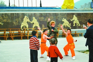 雷師傅是登封的出租車司機,開出租車已有六七年了。攀談時,這位土生土長的中年漢子告訴我們,每年,來自全國各地的孩子像潮水般到這里投師學藝,“好多外國人也到這里學習中國功夫!闭f這話時,雷師傅話語間透著自豪。