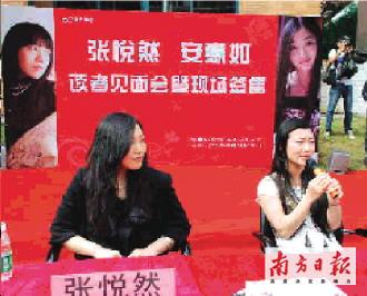22日中午,“80后”作家張悅然攜同安意如帶著她們的作品《鯉:嫉妒》以及《惜春紀》來到廣州大學城進行讀者見面會暨作品簽售。“美女作家”的頭銜吸引了不少廣東大學生,當天中午,簽售會現(xiàn)場火爆,使得原計劃12點半結束的簽售會延遲到了1點半。簽售會結束后,張悅然與安意如接受了本報記者的采訪。