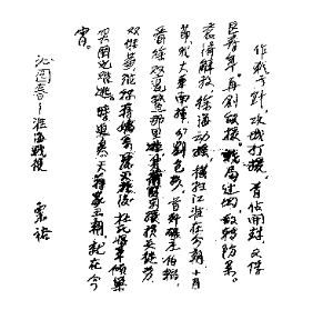 《沁園春·淮海戰(zhàn)役》詞,內(nèi)容如下:“作戰(zhàn)方針,攻城打援,首占開封。又俘區(qū)壽年,再創(chuàng)敵援;戰(zhàn)局過坳,敵轉(zhuǎn)防御。兗濟(jì)解放,徐海動搖,橫掃江淮在今朝。十月節(jié),我大軍南揮,分割包抄。首殲?zāi)肭f伯韜,看徐雙甕鱉哪里逃。笑緯國東援,損兵徒勞;雙堆黃維,稱蔣嫡系,覆滅于后。杜氏將軍,傾巢突圍也難逃。時迫矣,滅蔣家王朝,就在今宵!(粟裕的遺作手跡見上圖)