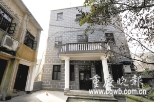 記者昨日看到,公館保護完好。樓房青磚砌墻,爬滿手指粗的藤蔓。大門采用羅馬柱,兩只石墩已經(jīng)風(fēng)化。屋內(nèi)上朱紅油漆的柏木鋪就地板和樓梯,欄桿上刻飾精細(xì),每層樓梯口和單個房間均設(shè)拱形木門。大門前是一方小院,青石板地面長著一株直徑約1米的黃葛樹。