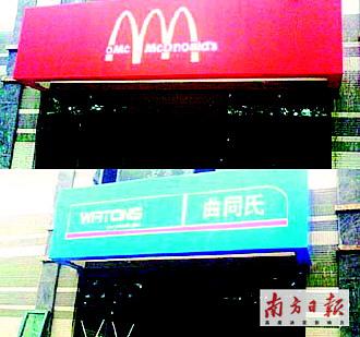 于是,肯德基的遠(yuǎn)房表弟“啃他雞”、康師傅的老鄉(xiāng)“康帥博”、王老吉的弟弟“王老古”、中國(guó)石油的近鄰“中圍石油”……紛紛被網(wǎng)民貼圖曝光。繼而,又有南京網(wǎng)民發(fā)現(xiàn)這些高仿品牌在某地特別集中,遂有山寨店一條街。
