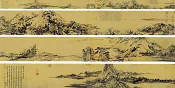 一次偶然的機會,沈周在畫攤上見到了被賣掉的《富春山居圖》,興奮異常,連忙跑回家籌錢買畫。當他籌到錢返回畫攤時,畫已經被人買走了。沈周捶胸頓足,放聲大哭,可是后悔已經晚矣,千辛萬苦弄到手的《富春山居圖》,如今只剩下留在頭腦中的記憶了。無耐的沈周只能憑借著記憶,背摹了一幅《富春山居圖》。