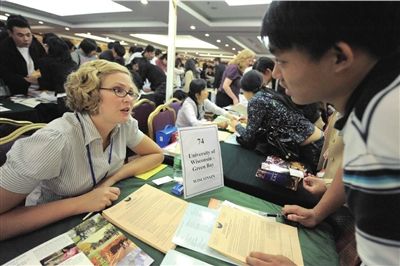 本報(bào)訊(記者周逸梅)昨晚,美國(guó)秋季教育說明會(huì)在北京新世紀(jì)日航飯店舉行,包括普渡大學(xué)等名校在內(nèi)的82所美國(guó)高校的招生人員與學(xué)生面對(duì)面進(jìn)行交流,規(guī)模比往年擴(kuò)大了一倍。影星萊昂納多的母校此次也首次來京進(jìn)行宣傳。