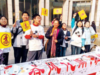 “春風化雨,潤物如‘蘇’”。昨天上午在北京大學百年講堂前,十幾名學生手舉“蘇”字黃旗齊呼:“歡迎支持蘇彥捷老師……”有12年歷史的北大“十佳教師”評選昨日開始。由于三角地的拆除,因此這是北大歷史上首次將“尊師墻”移至百年講堂前,而各院系也首次被集中在一起為候選人拉票吶喊。一時間,各家吹拉彈唱,“有一種‘快男超女’現(xiàn)場拉票時的感覺!痹S多北大學生表示。