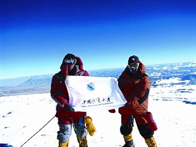 10月2日早晨6點40分至8點40分,地大登山隊共有六名隊員分兩批登頂,他們是:該校體育課部董范教授、地學(xué)院08級新生德慶歐珠,體育課部05級學(xué)生張瑜、高琳,機電學(xué)院05級學(xué)生袁復(fù)棟、資源學(xué)院08級新生次仁旦塔。