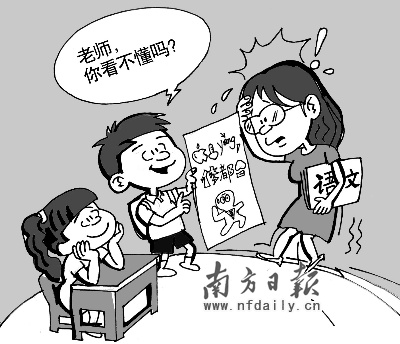 據(jù)了解,正因?yàn)椤盎鹦俏摹钡幕逎?所以不少同學(xué)會在寫周記時(shí)使用,不想讓班主任窺見自己的心事!捌綍r(shí)媽媽愛翻我的日記,現(xiàn)在我用火星文她也奈何不了……”說起“火星文”的“妙用”時(shí),廣州市第三中學(xué)一位女同學(xué)得意地笑了。