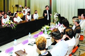 右上圖 姚期智教授在主持講授團(tuán)專(zhuān)家與大學(xué)生座談 郭海軍攝