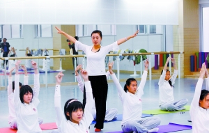“屈右膝,左腿伸直,雙臂打開……”昨天上午,伴隨著輕柔的音樂,北京二中舞蹈廳里30名高中女生正在上瑜伽課。30來名高一學(xué)生手揮高爾夫球桿,有模有樣地學(xué)習(xí)擊球、推球。