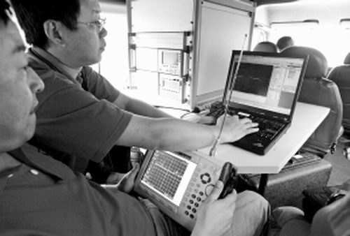 據了解,信息探測車里除了筆記本電腦顯示信號外,還有一臺專門監(jiān)測儀器。“信號傳送進來后,無線電監(jiān)測儀就會發(fā)出信號,一旦發(fā)現可疑信號,會立即追蹤信號源,然后將其屏蔽。屏蔽的都是‘點’,附近的通訊不會受影響!惫ぷ魅藛T稱,昨天上午共截斷了兩條信號。由于監(jiān)測到的時間較短,所以該儀器只能屏蔽信號源,考生的位置無法鎖定。截至記者發(fā)稿時,公安機關已通過市信產局監(jiān)控的信號,抓獲了兩名傳送可疑信號的嫌疑人,并將其拘留作進一步調查。