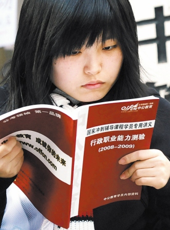高等教育大眾化時(shí)代,公務(wù)員考試成了百萬雄師爭過的新“獨(dú)木橋”。2009國家公務(wù)員考試已落幕,人們不僅念叨77萬多人趕考1萬多個(gè)崗位的盛況,也關(guān)心這場考試的命題思路,對接下來的省公務(wù)員考試會(huì)有哪些導(dǎo)向作用。因?yàn)樵诤芏啻髮W(xué)生眼里,“國公”就像練兵場,真正的戰(zhàn)場在省公務(wù)員考試。