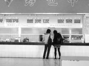 會不會是食堂更換過廣告牌?記者詢問了幾名食堂的服務(wù)員,一名年輕的女服務(wù)員說:“我剛來兩個月,在這兩個月里沒有換過。這里服務(wù)員基本上都是剛來的,只有幾個廚師在這邊很久了!彼钢贿h(yuǎn)處一名帶著廚師帽的男子說!皼]有,沒換過。”那名廚師十分肯定地答道。