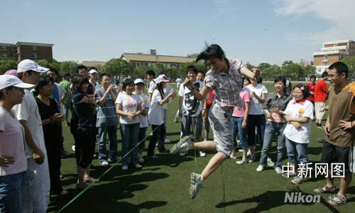 這是今天發(fā)生在南開大學(xué)首屆學(xué)生心理運(yùn)動(dòng)會(huì)上的一幕。以“情系災(zāi)區(qū),溫暖校園”為主題的學(xué)生心理運(yùn)動(dòng)會(huì),面向全校學(xué)生,希望通過團(tuán)體性身心活動(dòng),讓同學(xué)們放松身心,緩解壓力,熔煉團(tuán)隊(duì)精神,以?shī)^發(fā)向上的精神狀態(tài)投入今后的學(xué)習(xí)生活。