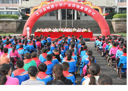 處于5.12汶川大地震震中區(qū)的綿虒小學(xué)在這次地震中所有教學(xué)建筑都受到不同程度損害,9個(gè)班443名師生停課已達(dá)3個(gè)月之久!斑@里的學(xué)習(xí)條件比我們哪里好多了,感謝廣安市區(qū)的叔叔阿姨給我們提供了這么好的學(xué)習(xí)和生活條件,我一定珍惜這來(lái)之不易的學(xué)習(xí)機(jī)會(huì),好好學(xué)習(xí)。” 坐在寬敞明亮的教室里,手握語(yǔ)文書(shū),綿虒小學(xué)五年級(jí)學(xué)生陳思雨向記者表達(dá)了自己最真摯的心聲。