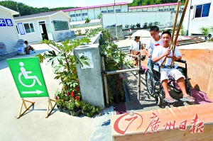 在北川中學(xué),一條用簡易木板搭建起來的殘疾人過道已經(jīng)開始使用。曹景榮 攝