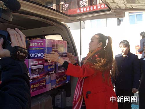 團梅為內(nèi)蒙古自治區(qū)航錦后旗順利實驗學校和家鄉(xiāng)小學捐贈數(shù)萬元樂器