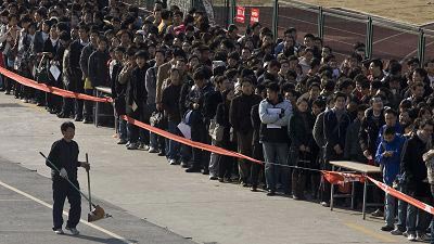 這場(chǎng)“中高級(jí)人才招聘會(huì)”要求應(yīng)聘者必須有本科以上學(xué)歷、中級(jí)以上職稱,或者有特殊才能,但剛開門就有成千上萬(wàn)的人擠進(jìn)來(lái)。
