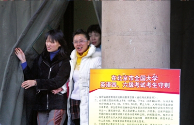 昨天上午11點(diǎn)半,首都師范大學(xué)英語(yǔ)四級(jí)考場(chǎng)散場(chǎng),物理系大三的小沈抱怨今年的考試太難,英語(yǔ)的詞匯量和閱讀量有點(diǎn)大。他非常遺憾沒(méi)趕上報(bào)名參加試點(diǎn)機(jī)考,“聽(tīng)說(shuō)機(jī)考聽(tīng)力比重大,而我的閱讀能力沒(méi)有聽(tīng)力好!