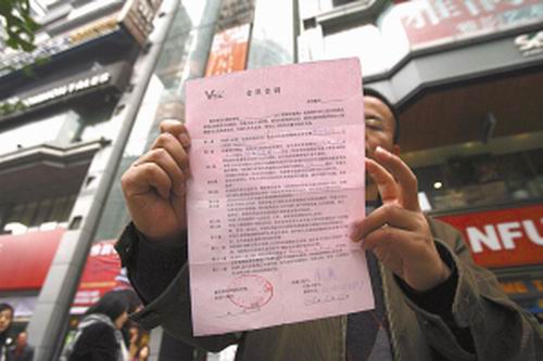 一學員拿著合同書向記者投訴。記者 高科 攝