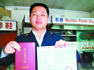 小唐說:“我寫作這本書,就是想使初學者少走彎路,能快速成為一個專業(yè)的修鞋工人!睂⒔8萬字的《世界第一機器修鞋書》書稿去年底終于寫作完成,并于去年11月28日在廣東省版權局進行了版權登記。