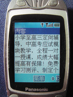 劉女士的孩子在紅橋區(qū)實(shí)驗(yàn)小學(xué)上五年級(jí),她最近經(jīng)常接到提供寒假輔導(dǎo)的短信。記者按照她短信中的號(hào)碼撥通了報(bào)名電話,自稱是某著名培訓(xùn)中心的“張老師”介紹說(shuō):“我們能提供小學(xué)一年級(jí)到高三各學(xué)科的定向輔導(dǎo),尤其是針對(duì)中高考的學(xué)生!迸嘤(xùn)地點(diǎn)在河西區(qū)的一棟寫字樓內(nèi),老師在一個(gè)大辦公室分割成的若干格子間內(nèi)對(duì)學(xué)生進(jìn)行一對(duì)一授課,還可以針對(duì)不同孩子制定特殊的輔導(dǎo)方式。