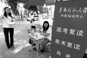 而盈速教育網(wǎng)近期的一項(xiàng)調(diào)查顯示,廣東每年參加高考的復(fù)讀生占全部高考考生總量大約為15%,總數(shù)接近8萬人,其中廣州每年有4000~5000人復(fù)讀。去年廣州共有7000人參加復(fù)讀,廣州卓越文化培訓(xùn)學(xué)校唐俊京表示,估計(jì)今年復(fù)讀生至少達(dá)到8000人左右。