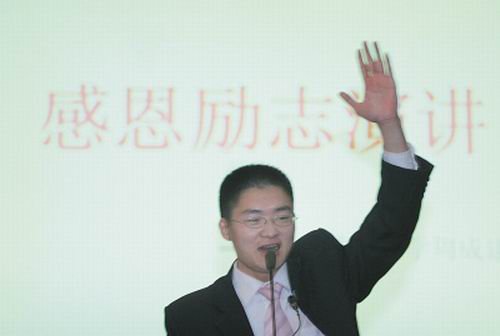 “我的經歷其實就是最好的勵志故事!”周成建說,他來自四川金堂的貧困山區(qū),記憶中,他的童年從沒吃過飽飯。但周在學習上從來都是學校的“尖子”。2005年,他以615分的高分考入西南政法大學,2006年底,在大二開始了自己的演講生涯,組建了6人的演講團隊。