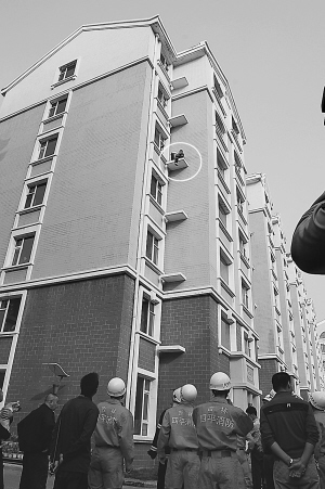 當日15時許,記者接到市民報料后趕到事發(fā)現(xiàn)場時看到,一輛消防車停在樓下,數(shù)百市民仰頭向上圍觀,110民警、陽光派出所民警在現(xiàn)場維持秩序,四平市公安局和消防支隊有關(guān)領(lǐng)導正在研究和布置施救措施,小區(qū)居民從家里拿來棉被,同小區(qū)保安一起自發(fā)地拉撐起來,四平市消防支隊特勤中隊指導員王軍勇組織消防人員鋪好安全氣墊,準備意外發(fā)生后展開救援工作。