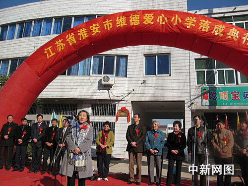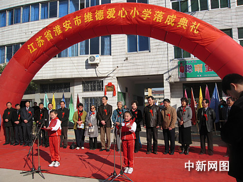 中新網(wǎng)淮安11月28日電 (記者 淮黎霞)一所名為“維德愛(ài)心小學(xué)”的落成典禮二十七日在周恩來(lái)總理的故鄉(xiāng)江蘇淮安市舉行。這所小學(xué)的捐贈(zèng)人是臺(tái)胞張介玉先生和“臺(tái)灣愛(ài)心第二春文教基金會(huì)”,并由中國(guó)僑聯(lián)經(jīng)濟(jì)文化基金會(huì)興建。