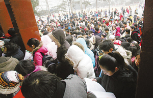 昨天“冷”的不僅僅是北京的天,研究生入學(xué)考試也遇到了少有的“降溫”現(xiàn)象。昨天,有120萬(wàn)人參加了全國(guó)碩士研究生入學(xué)考試初試,這是自2001年以來,首次出現(xiàn)報(bào)名人數(shù)呈下降趨勢(shì)的一年,相較于去年的128.2萬(wàn),降幅達(dá)6.39%。共有21萬(wàn)余人報(bào)考了2008年北京碩士研究生,這也比去年減少7127名,降幅為3.2%。雖然報(bào)考人數(shù)有所下降,但名校的競(jìng)爭(zhēng)則更加激烈。