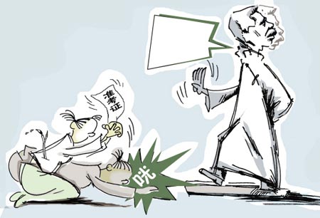 2月20日,是魯迅美術(shù)學(xué)院2008年藝術(shù)類(lèi)招生專(zhuān)業(yè)課考試的日子,上萬(wàn)名考生參加了當(dāng)天下午的考試。考前,考場(chǎng)外突然出現(xiàn)了一個(gè)令人驚訝的場(chǎng)面:一名女考生在家長(zhǎng)的陪同下,來(lái)到校園內(nèi)的魯迅先生塑像前,跪地給魯迅先生塑像磕頭,希望取得好成績(jī)。