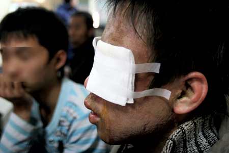 中日聯(lián)誼醫(yī)院的值班醫(yī)生說(shuō),傷者臉部、脖頸等多處被燒傷,臉部已經(jīng)被毀容,眼睛已經(jīng)看不清任何物體,因?yàn)闆](méi)有錢(qián),目前只做了常規(guī)的檢查,從被傷害的程度看,如果不能及時(shí)治療,隨時(shí)有失明可能。聽(tīng)到這個(gè)消息,時(shí)東旭的情緒有些激動(dòng),“我才18啊,我不想瞎。 彪m然眼睛被紗布蒙住,卻沒(méi)有擋住時(shí)東旭的淚水。