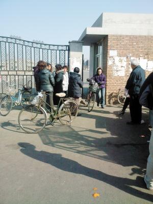 26日14:00左右,窄小的側(cè)門外圍著七八個中年婦女!白夥繂幔咳兆50元,要不先去看看房子,價錢再商量。”每看到有成對的男女學(xué)生從這里走過,幾名中年婦女就挨個兒問著同樣的問題!澳銈円窃敢,租一天40元也行,還有車接!币幻麐D女回頭指了指停在幾步外的一輛夏利轎車。