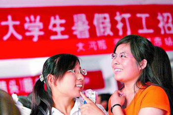 雖然勤工儉學(xué)不適用于《勞動(dòng)合同法》,但不少公司卻很喜歡招用在校學(xué)生為他們打工。易博說(shuō):“招聘在校大學(xué)生作為促銷員,一是因?yàn)樗麄內(nèi)巳杭,幾天時(shí)間就能招到一二百人;二是在校大學(xué)生有熱情,社會(huì)經(jīng)驗(yàn)比較簡(jiǎn)單,不會(huì)提額外要求給企業(yè)添麻煩!