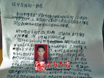 核心提示:新鄉(xiāng)13歲少年崔鑫沒有想到升入初中會(huì)是自己人生噩夢(mèng)的開始,噩夢(mèng)來自于崔鑫的一名同班同學(xué)。每天走進(jìn)校園,他都必須面對(duì)這位同學(xué)的“折磨”。終于,在忍耐了一個(gè)多學(xué)期后,為了徹底結(jié)束自己在校園的 “屈辱”生活,結(jié)束每天幫別人代寫作業(yè)的“奴才”命運(yùn),這個(gè)13歲的男孩在一個(gè)周日的午后,用打好的繩套結(jié)束了自己的生命。臨走前,他留下了一封寫給父母的遺書、一封寫給班主任卻沒有寄出的信。