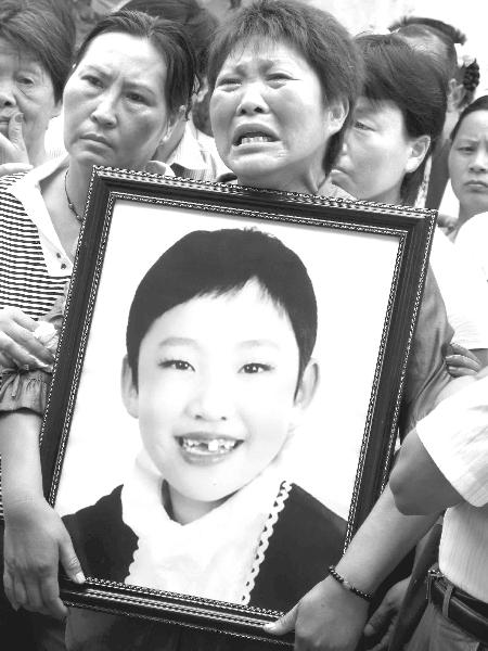 盡管還未開庭,但法庭外已聚集了數(shù)百名群眾,其中,受害人的親屬舉著死者生前的照片聲淚俱下地控訴著殺人兇手,不時有群眾擦拭眼淚。“我是專程從10多里外的常莊鄉(xiāng)趕過來的,我要看看這個殺人女教師究竟長什么樣,要看看她為什么要殺害自己年僅8歲的學生。”現(xiàn)場一位老太太說。