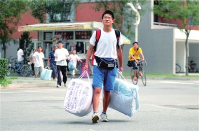 昨天下午,王佳明和同宿舍的同學忙著搬行李。他已經接到學校通知,即將從培訓期間所住的1號樓搬到6號樓,這就是他未來4年的宿舍樓!皩W校已經給我們發(fā)了被子等日用品,報到完畢后,我還要和老師一起負責接待新同學!