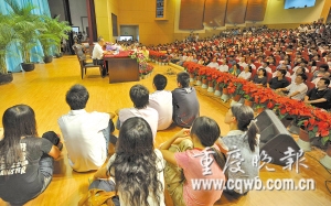 臺上臺下坐滿了前聽講學(xué)的重大學(xué)生 記者 冉文 攝