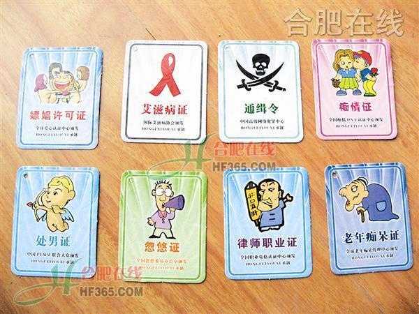經(jīng)商要有營業(yè)許可證,居民要有身份證,結婚要有結婚證……可是你聽說過“美女”、“光棍”、“色狼”也有配套的證件嗎?近日,我市一些學校門口的商家為了賺錢,竟公然向小學生出售“泡妞證”、“嫖娼許可證”等惡搞證件,家長、老師和部分學生對此均表示憤怒。