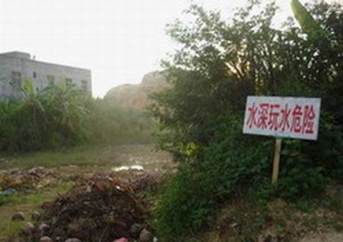 出事后,有關(guān)部門(mén)已在水塘周?chē)Q立了安全警示牌