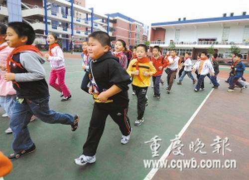 記者在渝中區(qū)曾家?guī)r小學(xué)看到,校園內(nèi)只有一塊20米見(jiàn)方的小操場(chǎng),剛剛能容下孩子們做體操,難以開(kāi)展長(zhǎng)跑運(yùn)動(dòng)。學(xué)校只得在大課間開(kāi)展踢毽子、跳繩等傳統(tǒng)體育運(yùn)動(dòng)項(xiàng)目來(lái)代替長(zhǎng)跑。學(xué)校前天給家長(zhǎng)們布置了“家庭作業(yè)”,讓他們督促孩子周六和周日回家后,在附近的運(yùn)動(dòng)場(chǎng)所開(kāi)展長(zhǎng)跑。