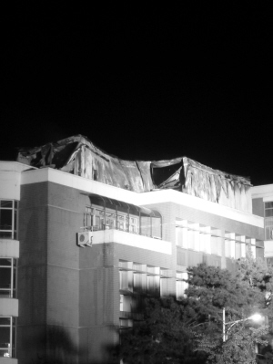 昨夜10時,記者趕到中國農業(yè)大學東校區(qū)南門。走到教學區(qū)內,樓間的空氣中彌漫著大量的濃煙。此時,食品科學與營養(yǎng)工程學院教學樓周圍50米范圍都拉起了警戒線,十余輛消防車警燈齊閃,數十名消防隊員正拖著水管緊急向樓頂噴灑著水柱。該教學樓高五層,樓頂處的火光依稀可見。至晚10時10分,明火被撲滅,大火將頂層建筑部分燒得歪歪斜斜,濃煙在夜空中形成了一道煙柱。