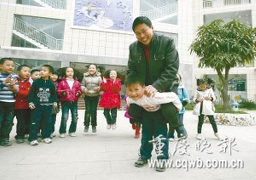 前日(12月2日)下午2時,開縣漢豐街道第三中心小學操場,一中等個頭,肩寬體胖,僅穿一件棉毛衫的男孩,正抱著同學不停旋轉(zhuǎn)。抱著同學轉(zhuǎn)圈的胖小子是該校一年級7班學生徐緯,圍成半圓形觀看的同學,則不停拍手為他鼓勁!澳銈儾粨乃麄儠さ箚?”面對記者提問,孩子們異口同聲回答:“不擔心,他力氣大得很!