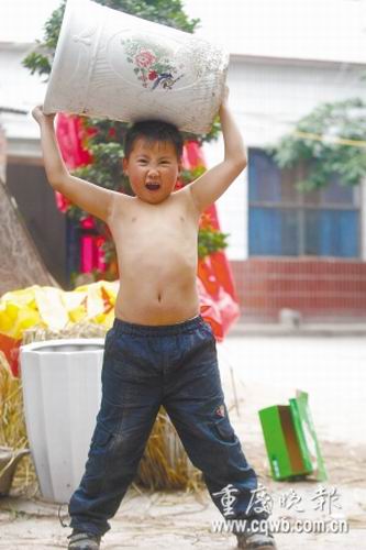 開縣有個6歲男童,他1歲零4個月時,就提起了5公斤重的東西;5歲時,背起了70多公斤重的母親;現(xiàn)在,更是輕松背起了體重93.5公斤的大人……在當?shù)兀袀雅號,叫“小小大力士”。